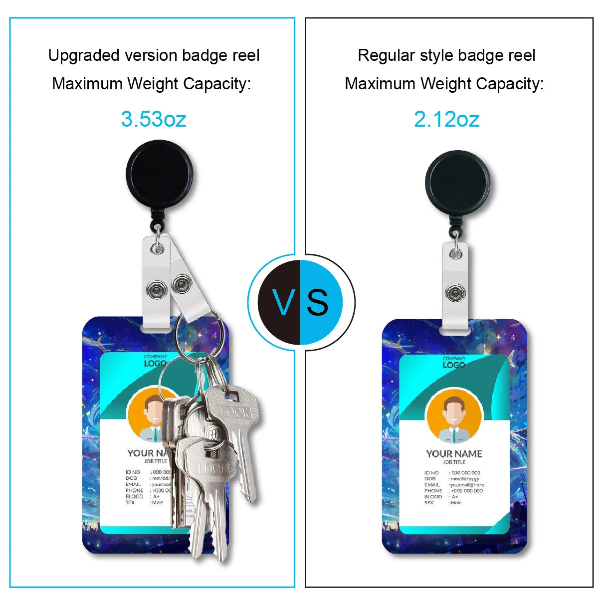 Retractable ID badge holder with rotating alligator clip 2 ID badge holder with black badge reel