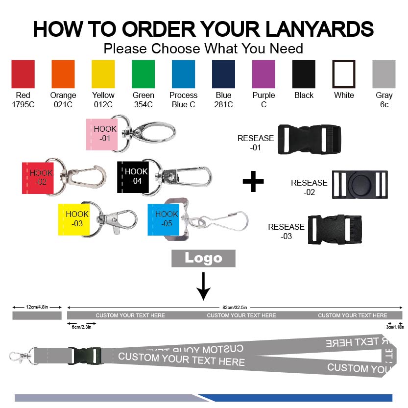 Custom Release Plastic Buckle & Metal Hook Lanyard